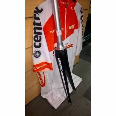 Carbon voorvork met 1 1/8″aluminium schacht en 1,5″ tapered balhoofd aan de onderzijde. Voor 100mm Quickrelease.